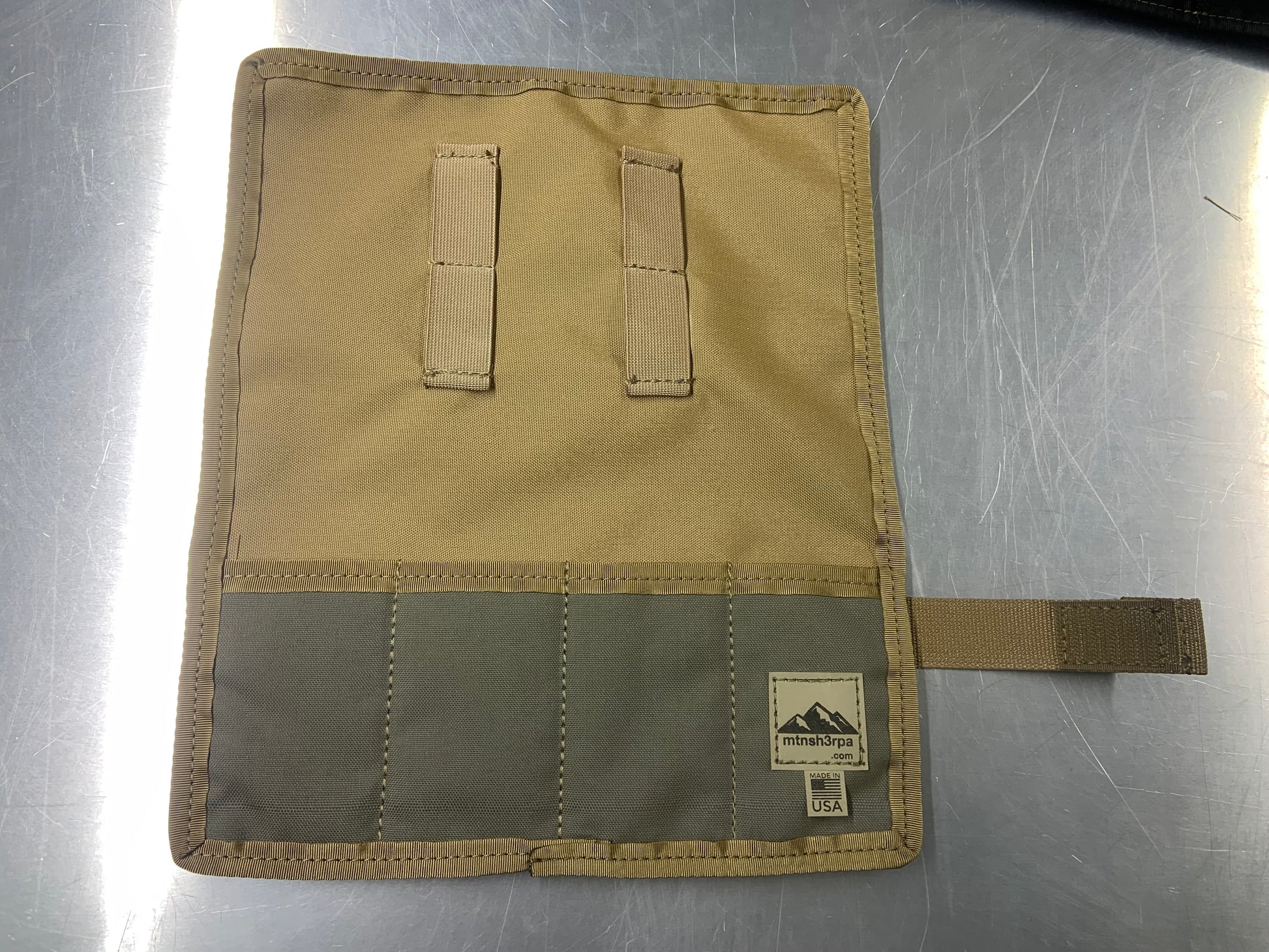 Our Watch Roll is 100% made in the USA. It will hold 4 watches (each pocket is lined with black felt) and it provides a place to store additional straps. It utilizes a velcro closure and measures 10" wide by 12" tall. Watches and straps are not included.